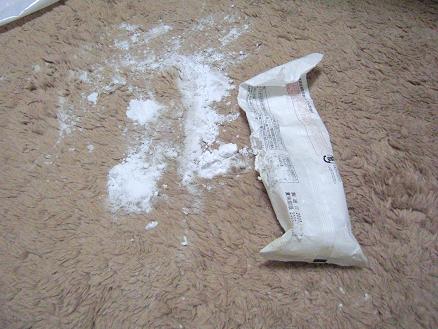 ちなみに片栗粉は夜中なので掃除機もかけられず、放っておきました。